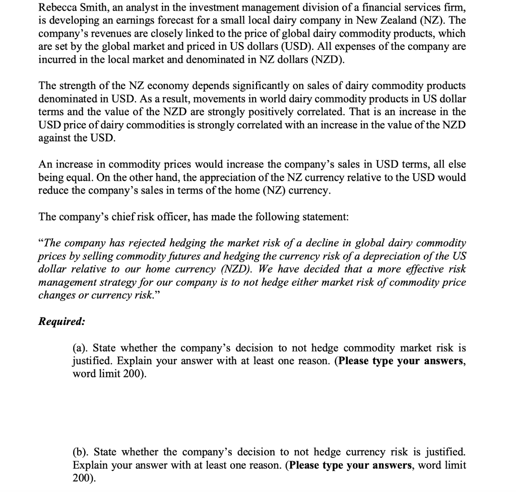 Solved Rebecca Smith An Analyst In The Investment Chegg Com